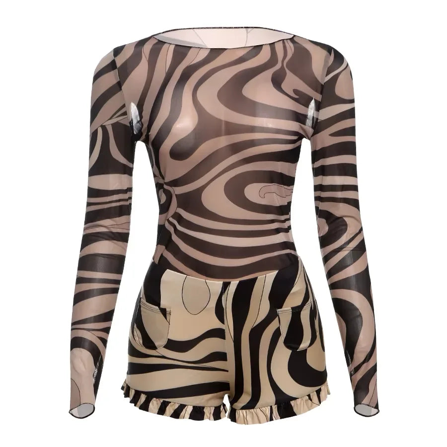 Super cute mesh top paired with non–see-through bottoms for the perfect balance of sexy. Model