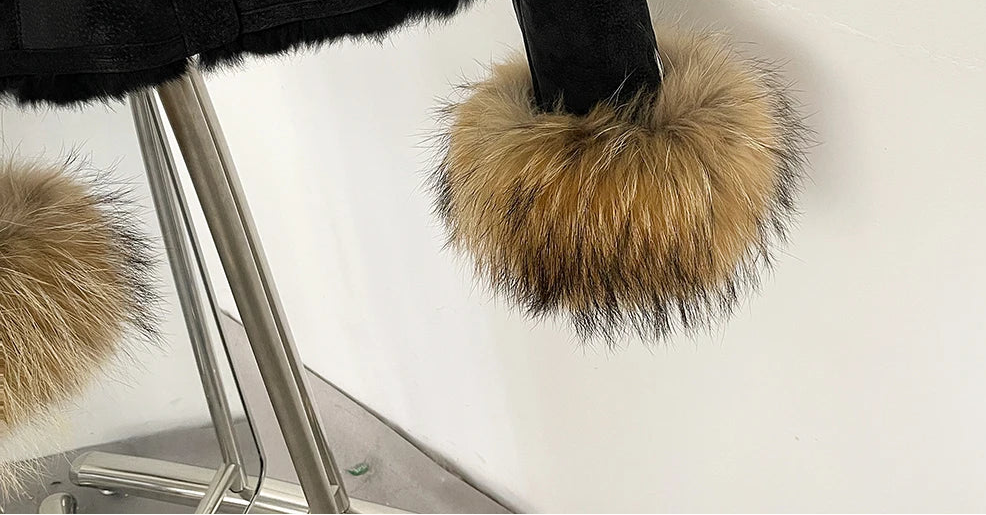 Soo thick & warm. Made with soft Rabbit Fur and smooth suede. Perfect for cold weather with a cozy, high-end feel.